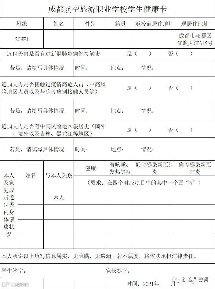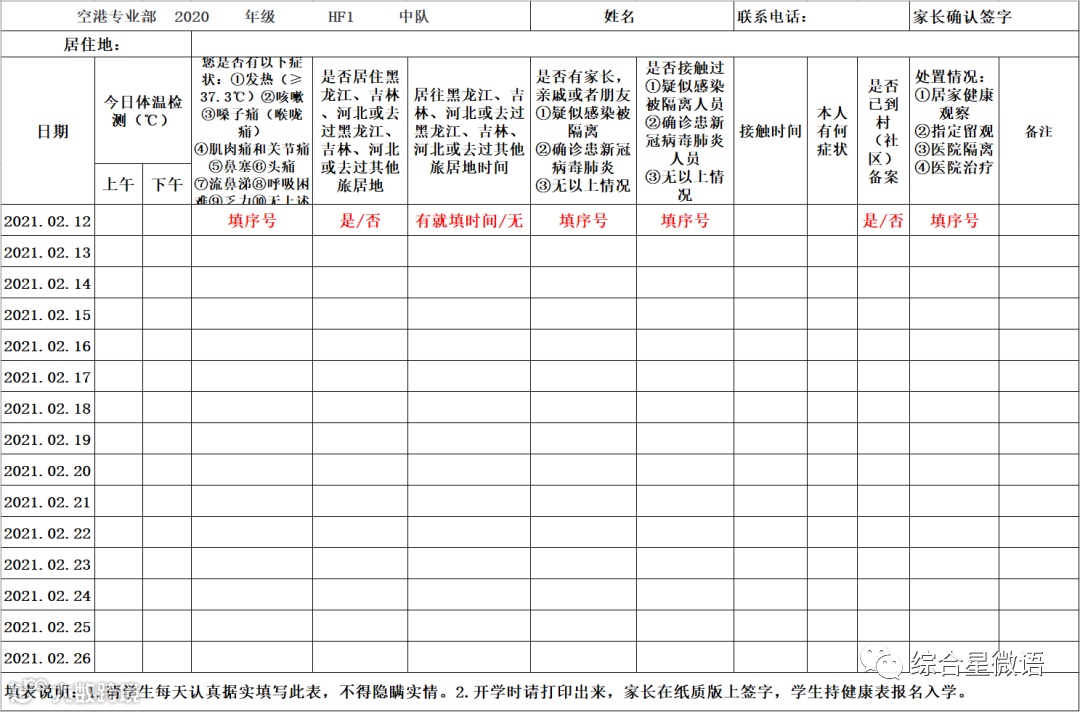 2.学生每日健康检测表