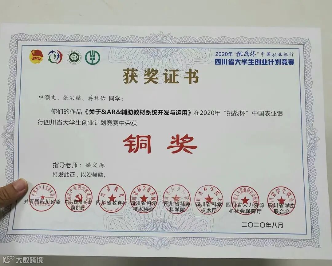 除了学院所颁发的“先进个人”等表彰,张洪铭还在“挑战杯”中国大学生创业计划竞赛中荣获了四川省科技创新与未来产业组铜奖,在不断尝试中,为自己的就业道路蓄力,做好万全准备。