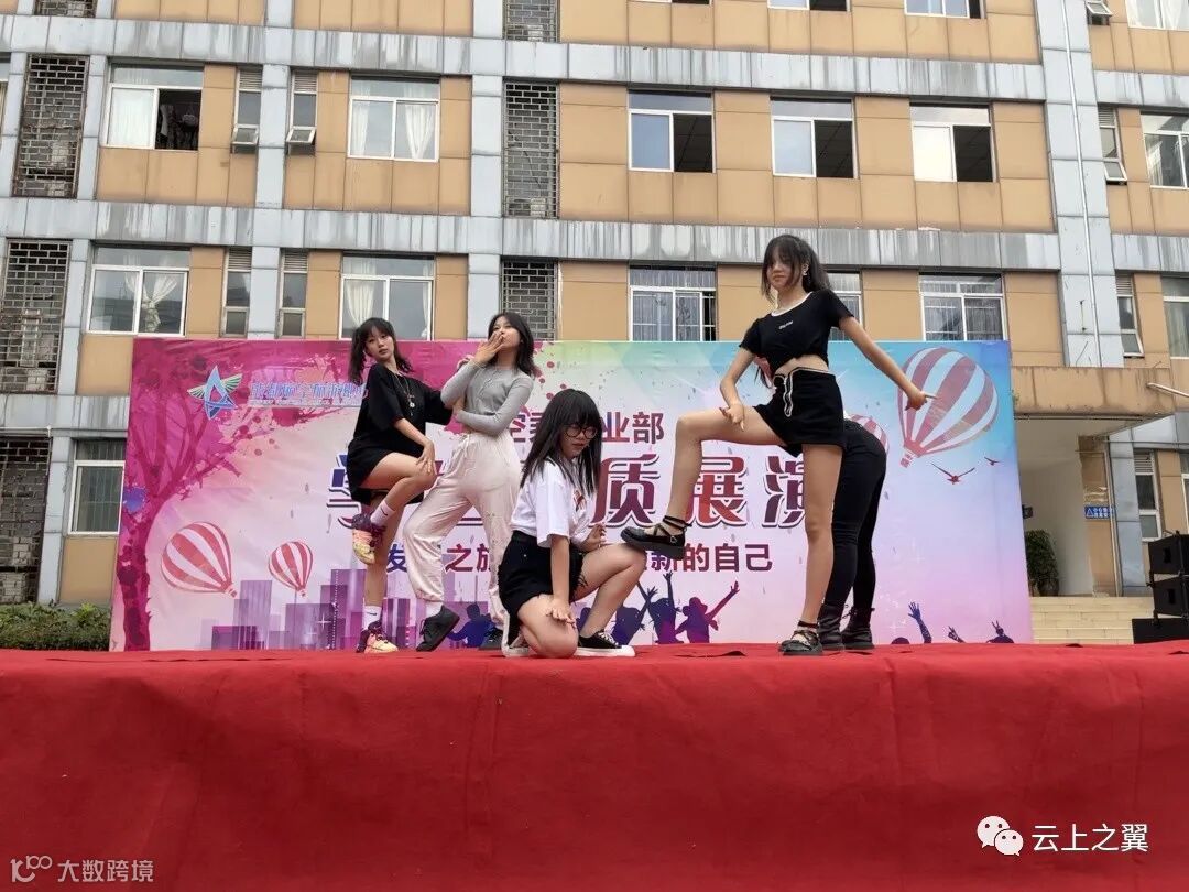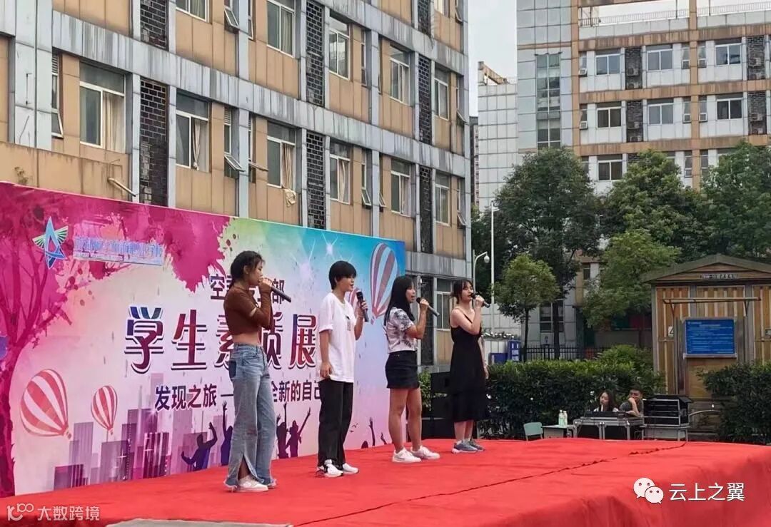 空乘专业部在3幢前自搭舞台
