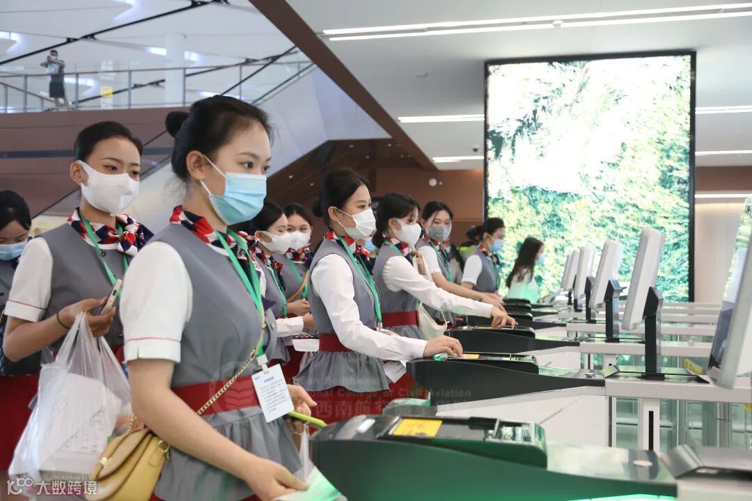 在演练过程中,同学们既抢先体验了天府机场的乘机流程,还提前试用了自助值机、智慧安检、智慧引导、自助登机、APM捷运系统、智能AI问询机器人等一大批“智慧机场”建设成果,模拟了各种旅客到达的情况以及可能会发生的乘机状况,圆满完成任务。