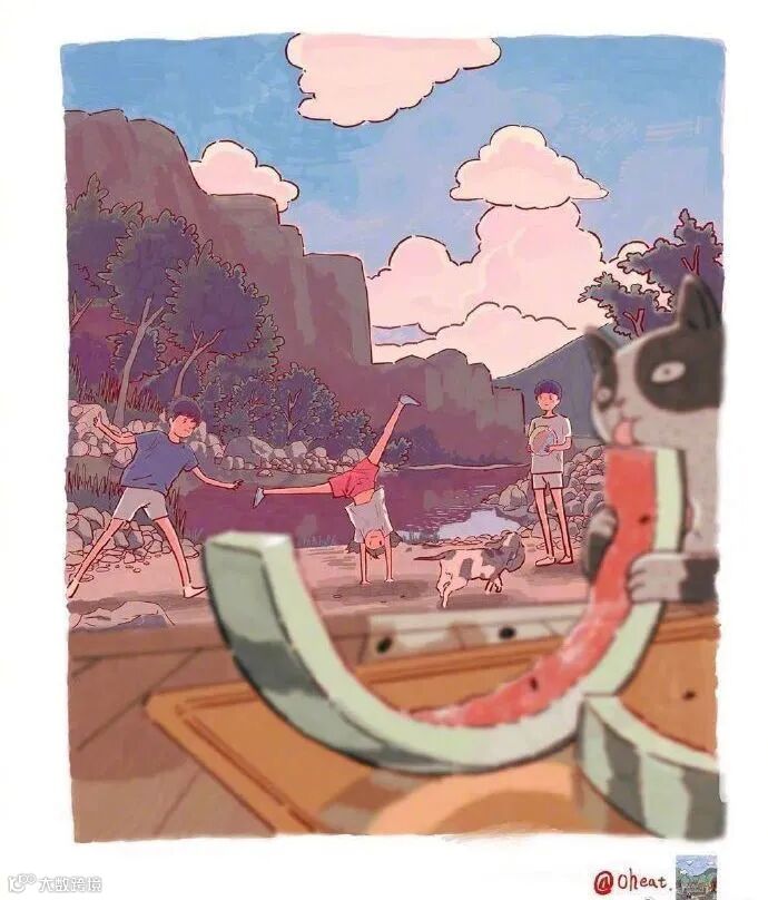 是属于吃完一个西瓜后的嬉戏