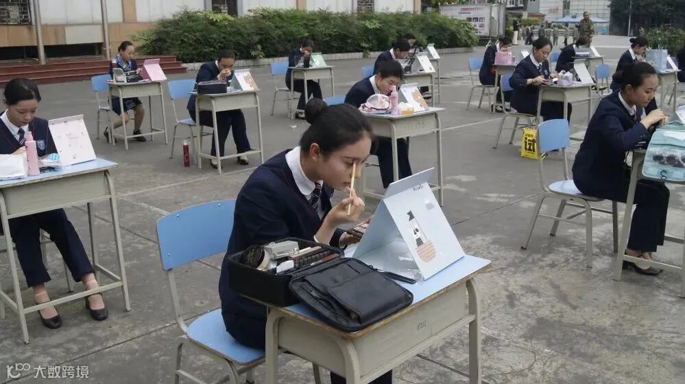 为了方便参赛选手,同时保证比赛得公平公正,专业部统一准备了棉棒、化妆镜、眉笔等标准化妆用品。比赛现场邀请到了多位礼仪教师作为嘉宾评委,对参赛选手进行综合、专业的考核打分。