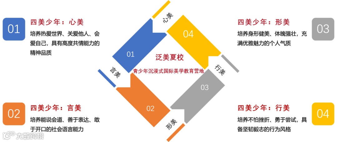 【泛美夏校】定位于以国际美学素养为核心内容的青少年沉浸式营地教育,在航空主题特色背景下,融合科学+工程+艺术等多学科学习设计。夏校的教育理念紧扣21世纪中国学生核心素养培养,参照北京师范大学5C素养模型,创造性地提出“四美少年”的培养目标,即:心美言美、形美、行美。