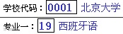 Ø 学校代码应为4位数字,专业代码应为2位数字或字母,若所输入的学校代码和专业代码格式有误则系统将会提示格式错误。