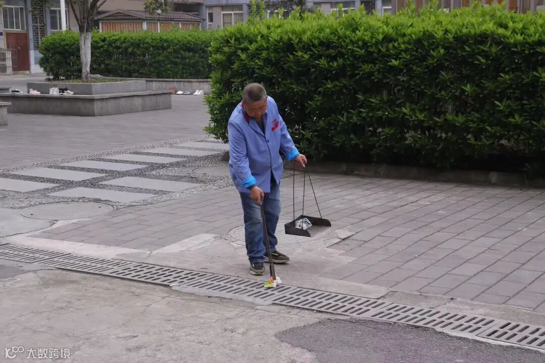 认真参与校园美化的叔叔阿姨