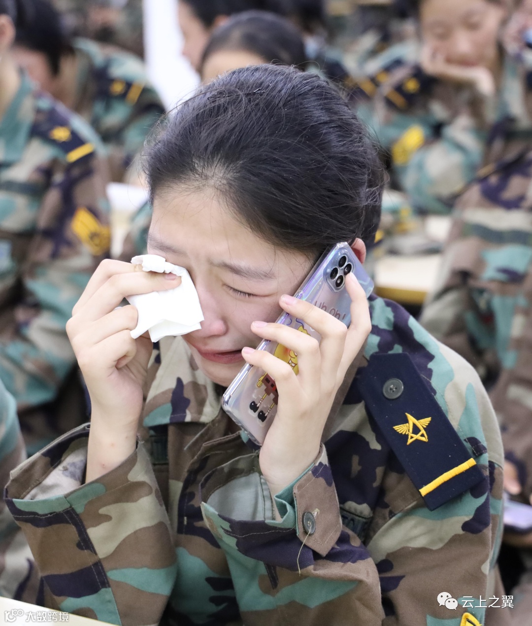 视频结束,现场哭声一片,大家手里都攥着纸巾,付昱老师说想父母了就给他们打个电话吧!同学们终于不用按捺自己想给父母打电话的心,一个接一个地向父母诉出他们的想念。