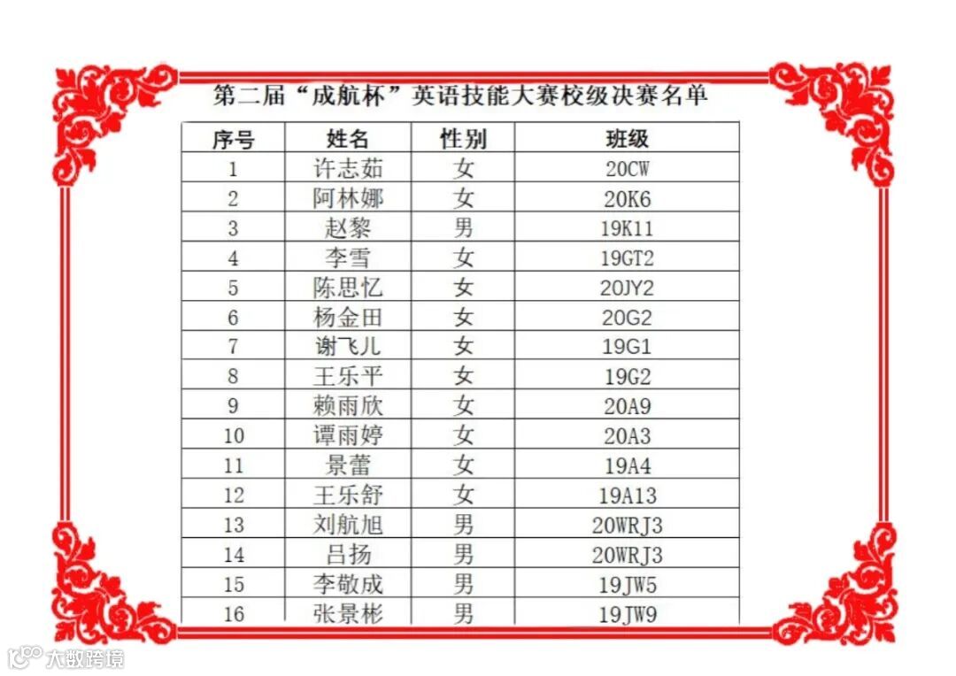 下面我们即将公布的是校级决赛名单。名单如下: