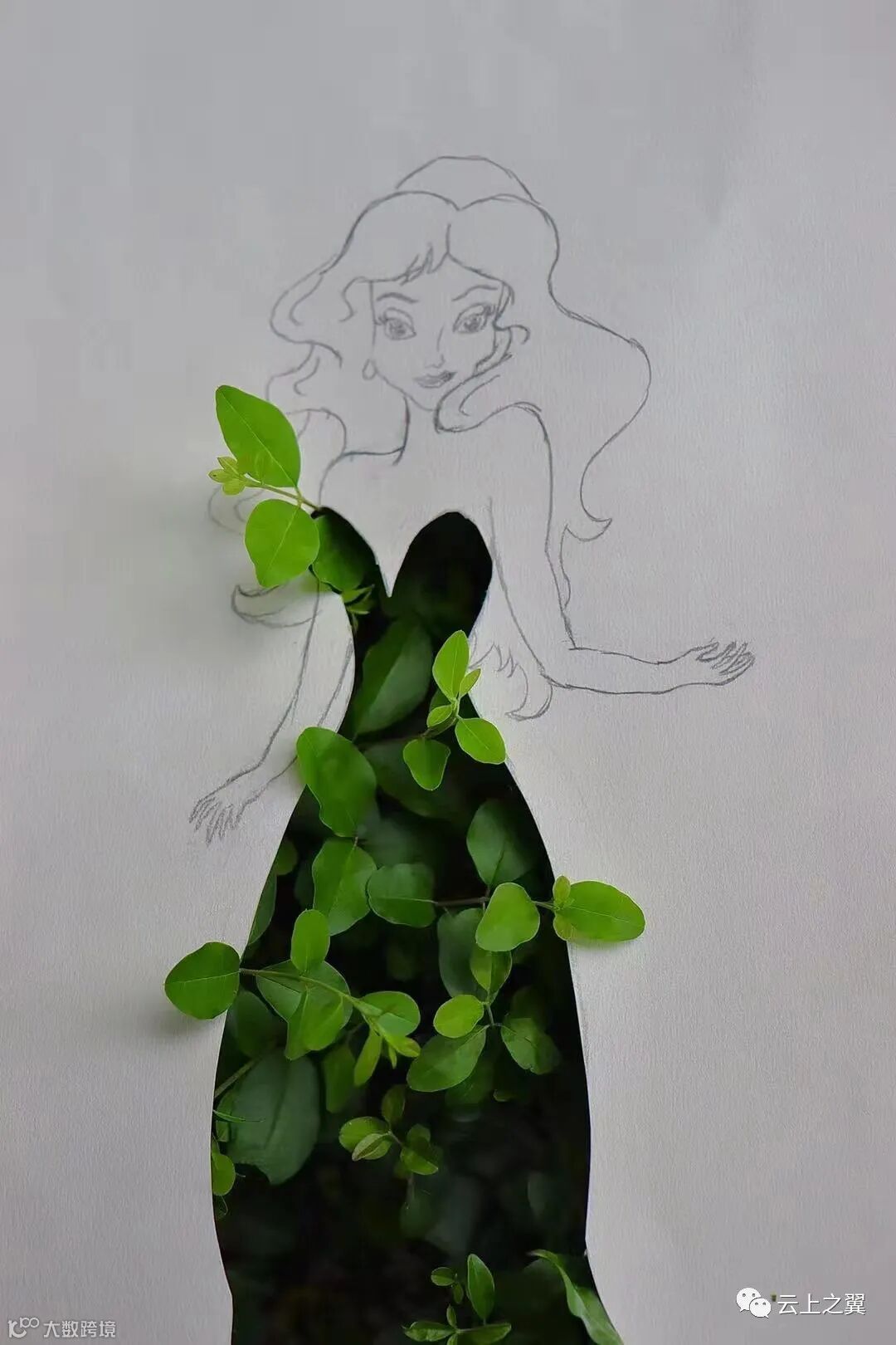 女孩的裙子分为两种颜色,深绿和浅绿,深绿色作为主色调浅绿色辅助,两种颜色相互配合共同协作,即不会让裙子显得很单调无趣也不会看起来杂乱无章毫无条理可言。深绿色的打底再加上几片浅绿色叶子的点缀使得整体大放异彩光彩照人。