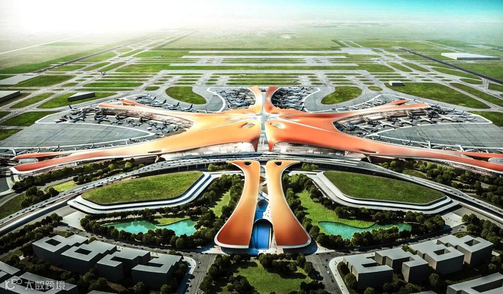 北京大兴国际机场是建设在北京市大兴区与河北省廊坊市广阳区之间的超大型国际航空综合交通枢纽。(2040年)按照客流吞吐量1亿人次,飞机起降量80万架次的规模建设七条跑道和约140万平方米的航站楼,机场预留控制用地按照终端(2050年)旅客吞吐量1.3亿人次,飞机起降量103万架次,九条跑道的规模预留。