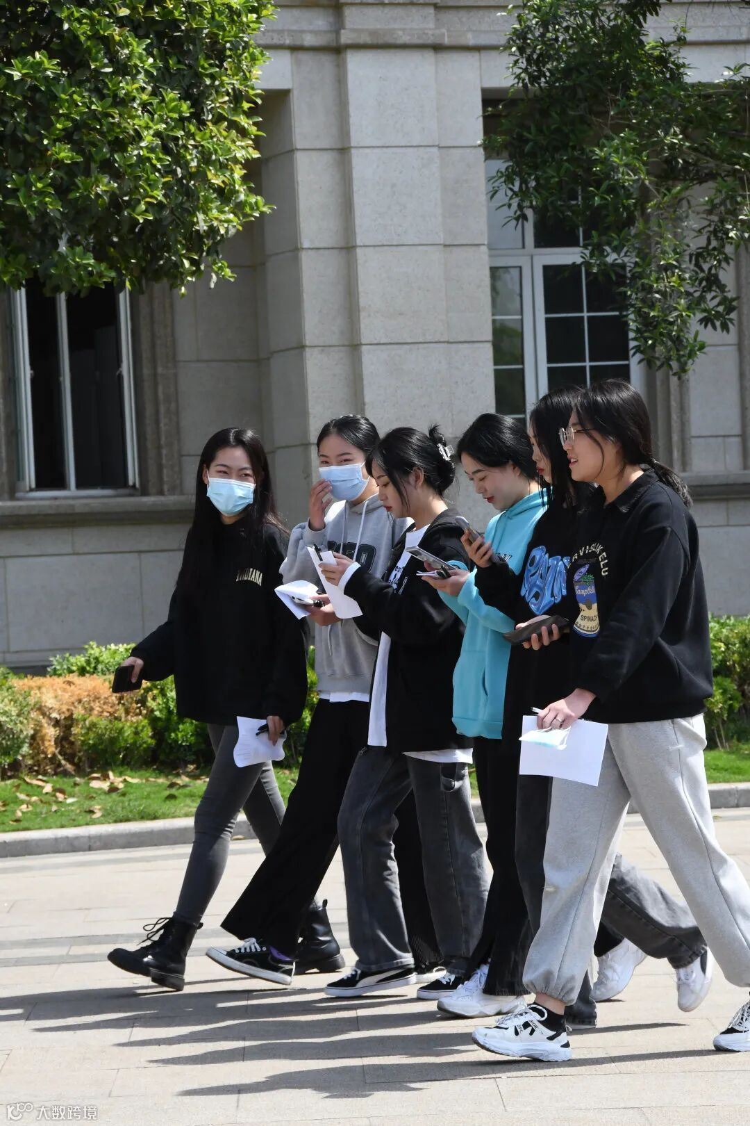 静静等候的他们,或静默沉思、或相互交谈,用微笑驱赶着考前的紧张,像整装待发的“战士”,只剩下必胜的信心与期待。