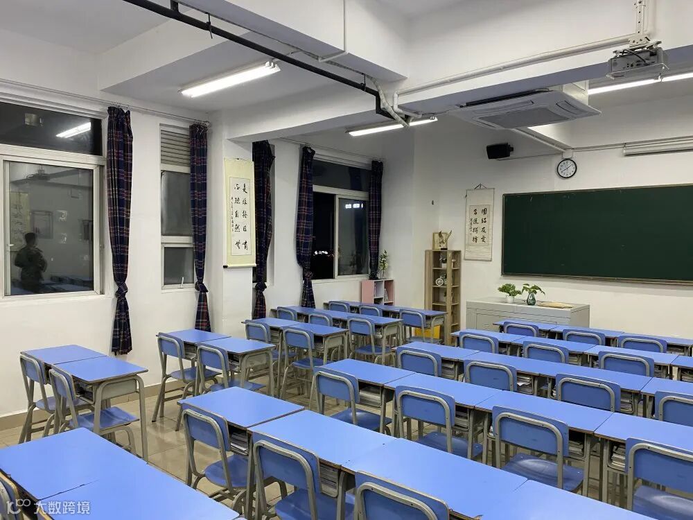 明亮的教室,整齐的桌椅,