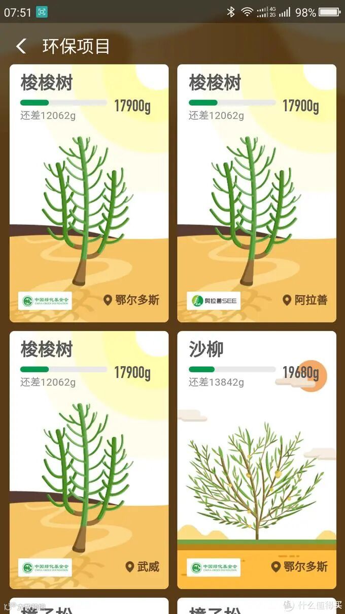五、当能量积累到一定程度就可以种树了。点击蚂蚁森林庄园右上角的“种树”,你可以根据自身所拥有的能量挑选自己想种植的树。