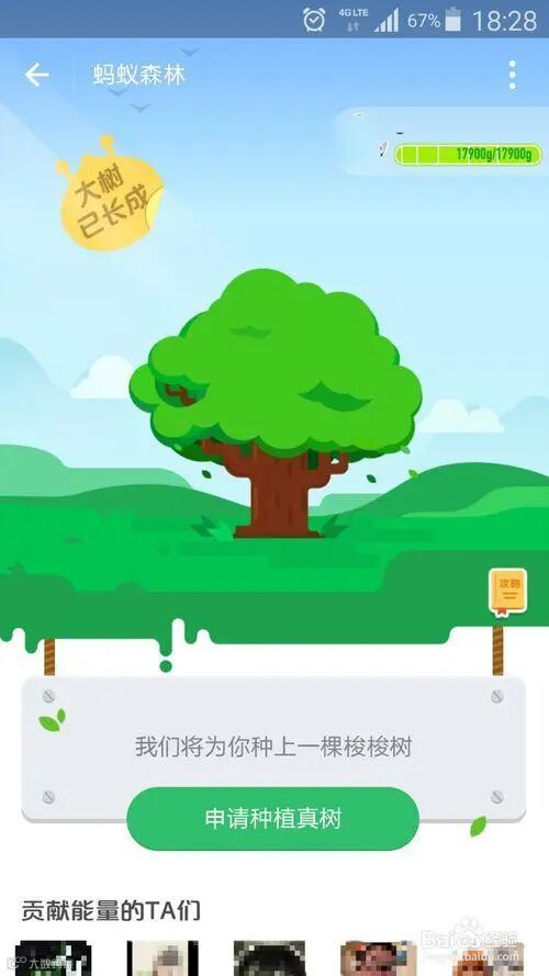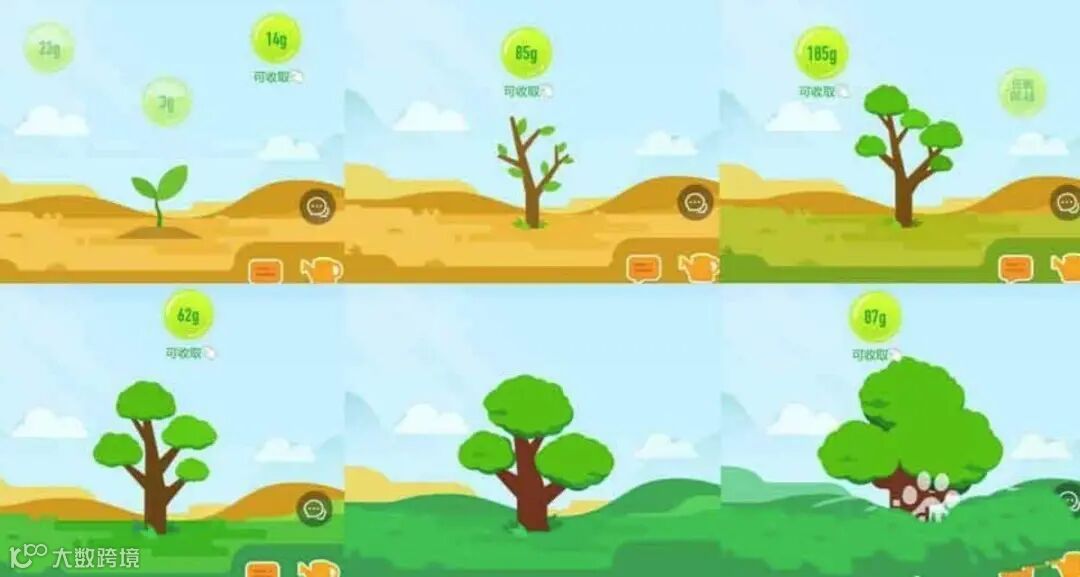 一、蚂蚁森林里树的成长需要能量,随着能量的增多,树会慢慢长大。