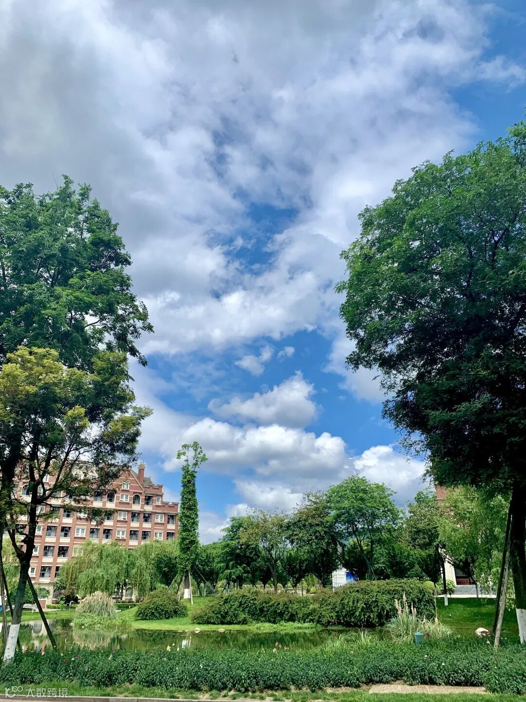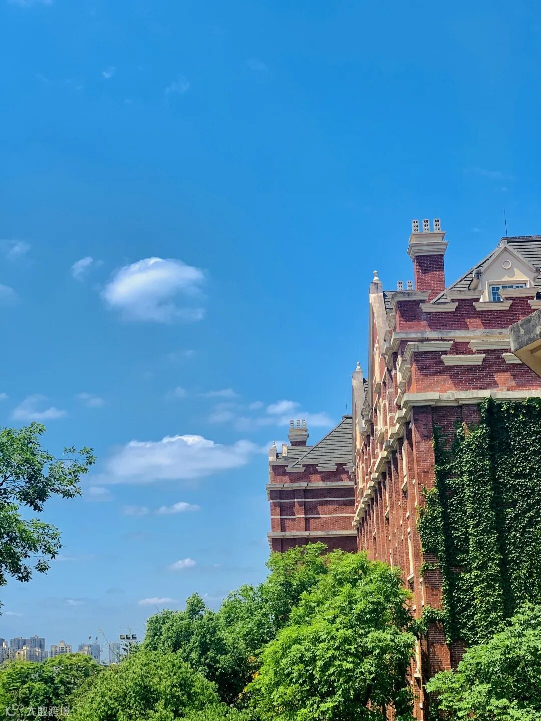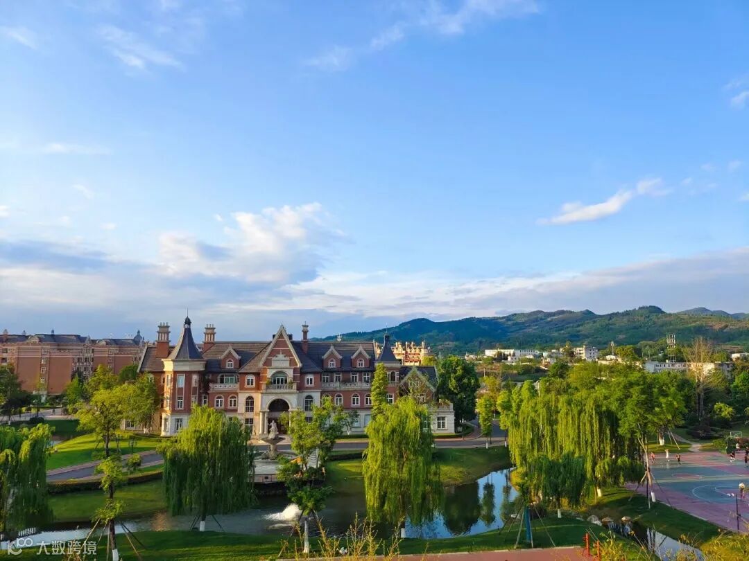 教学楼依靠着白云