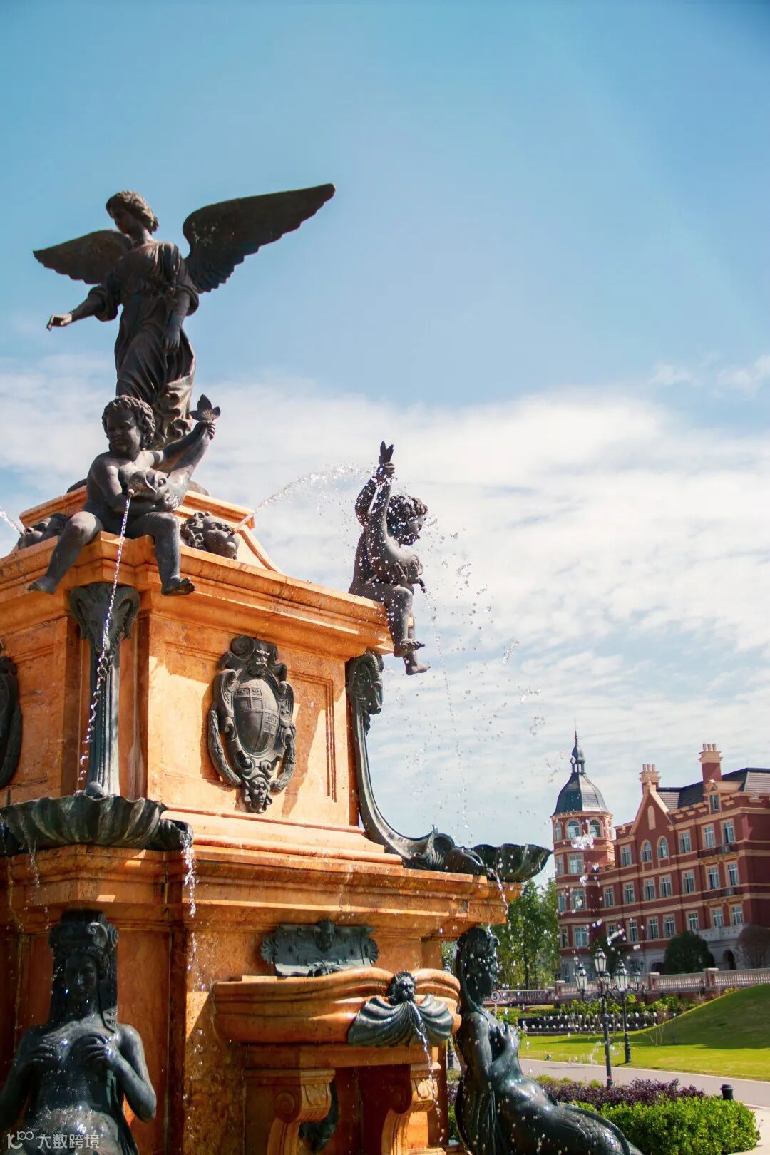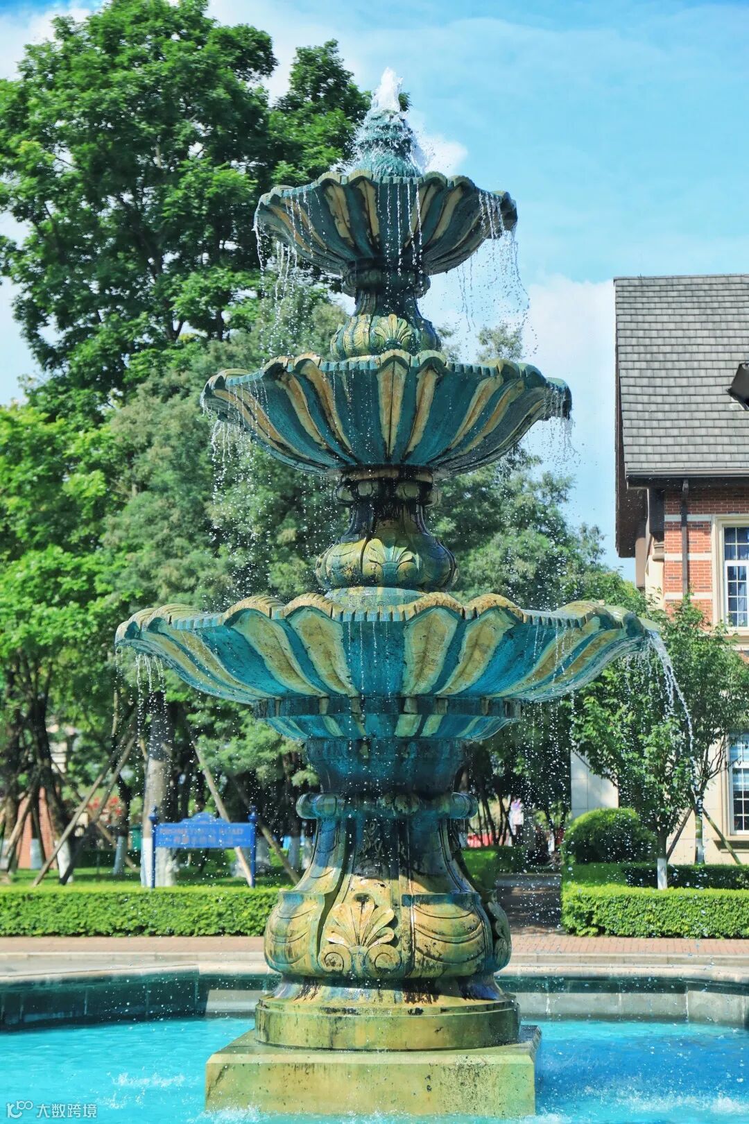 掉进了喷泉的水里