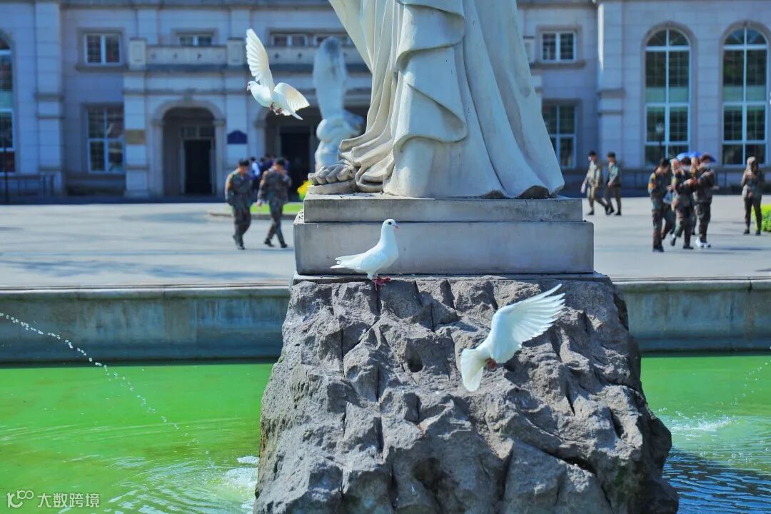 而伟岸教学楼的倒影