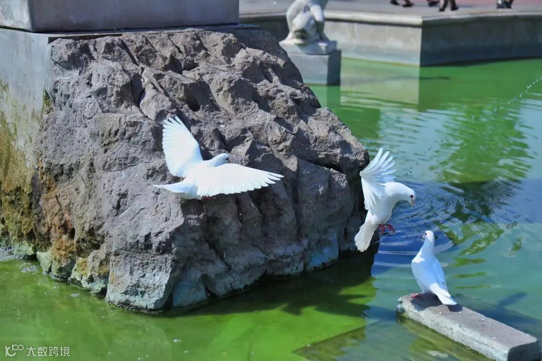 扑腾着翅膀低飞的鸽群