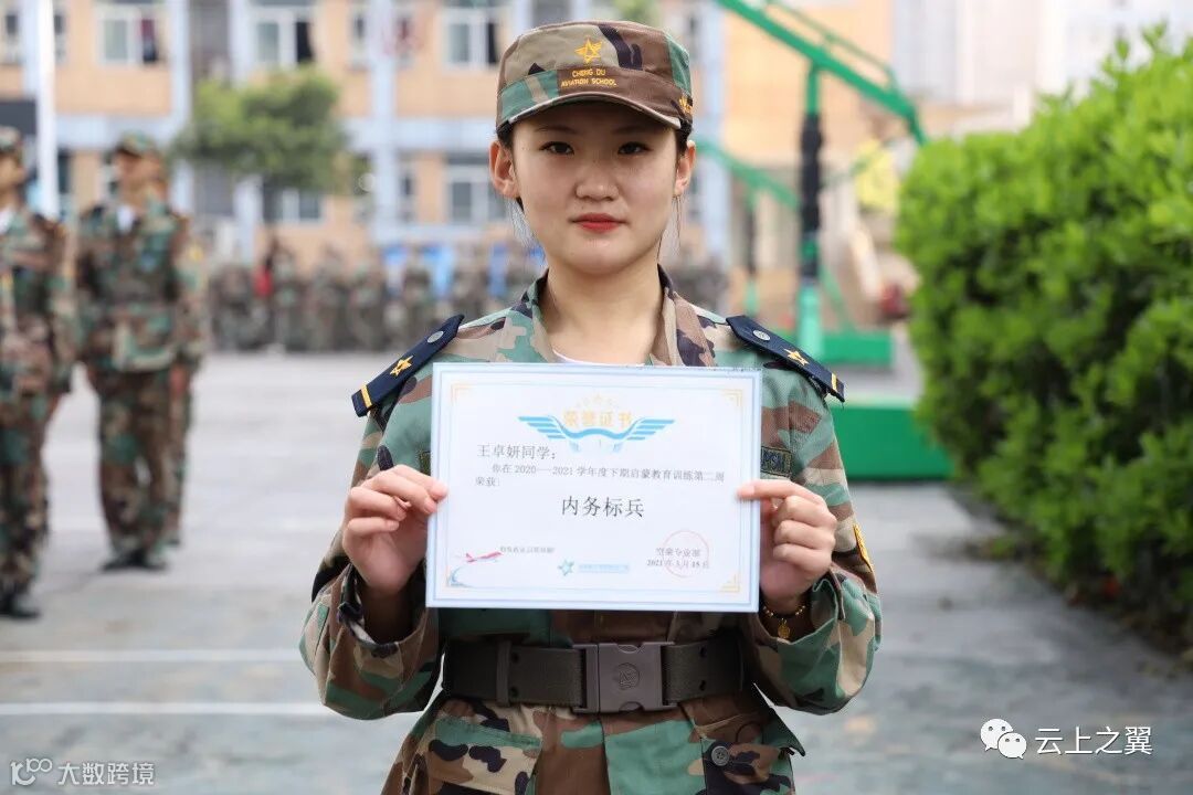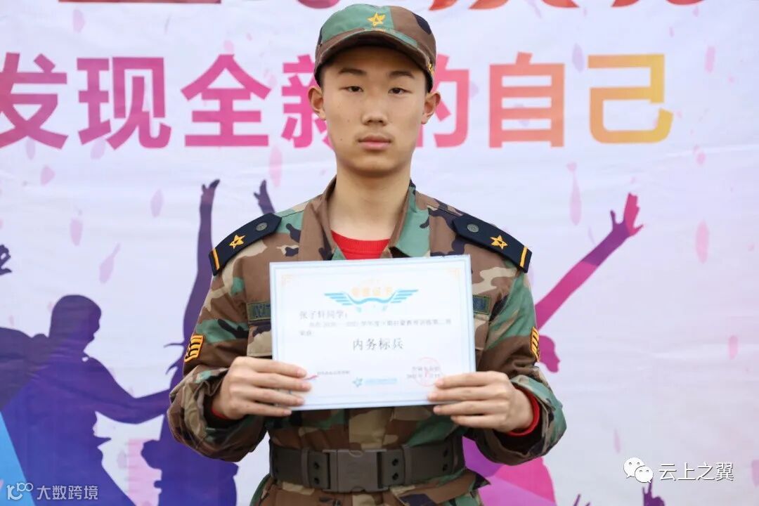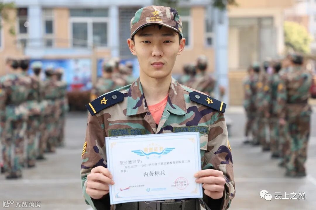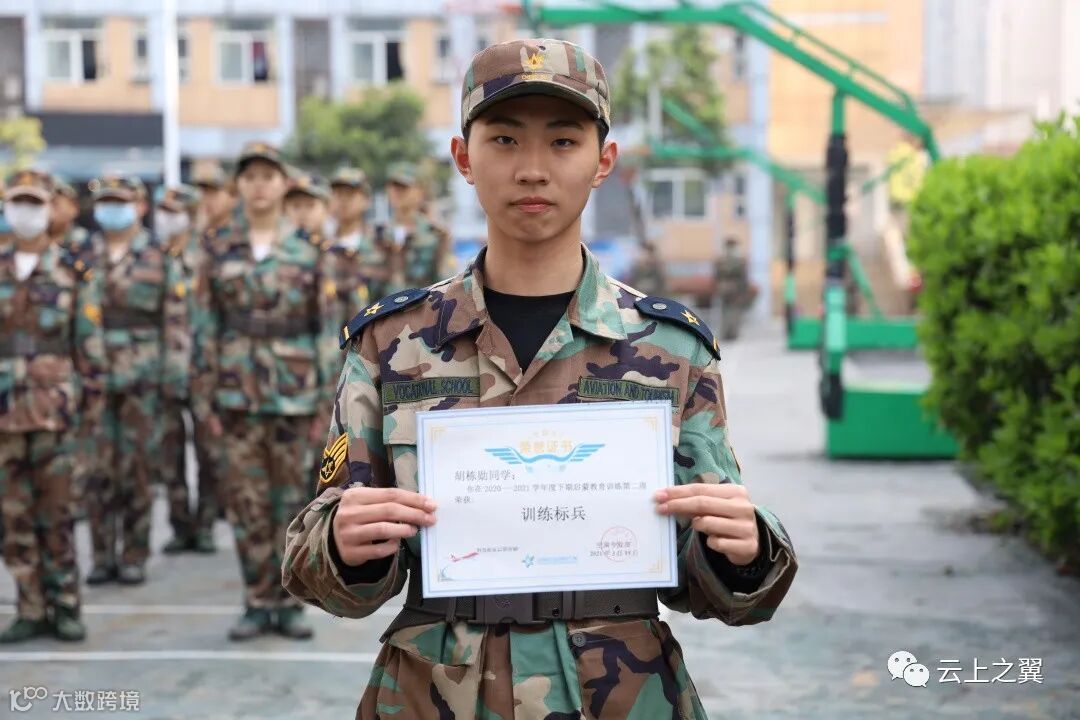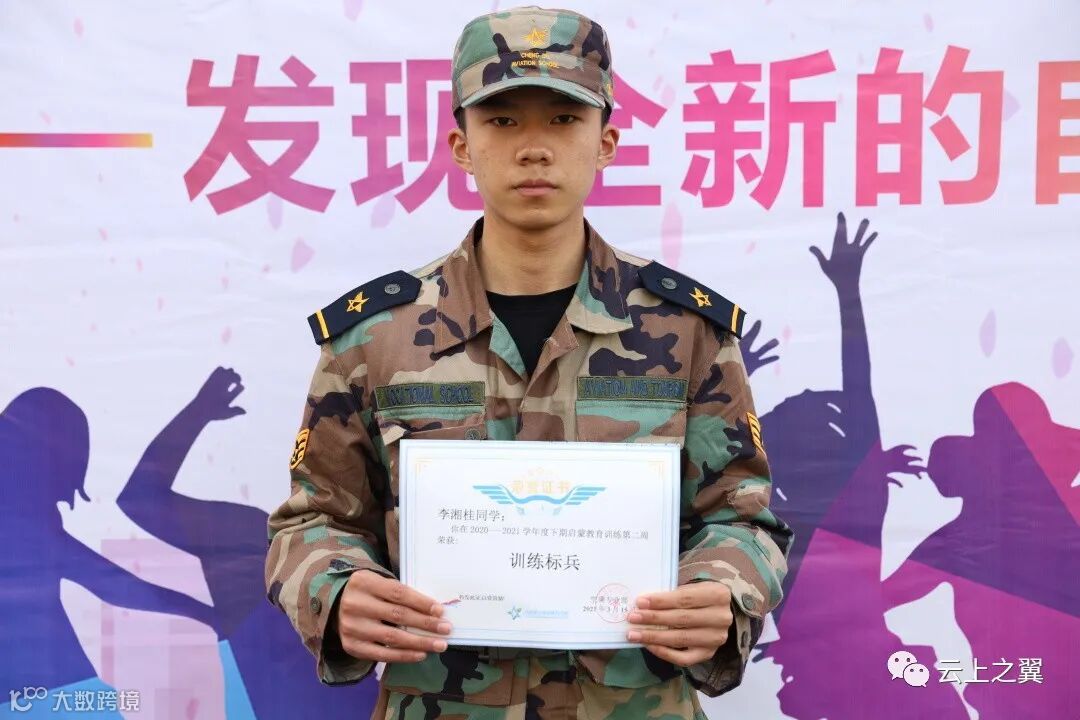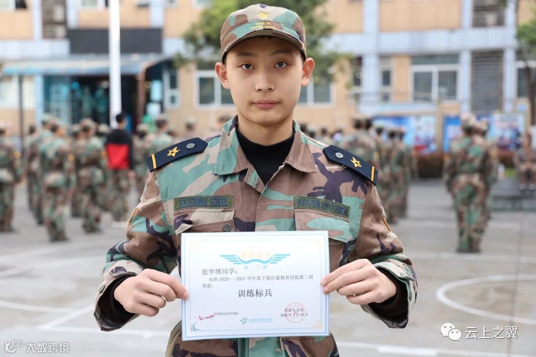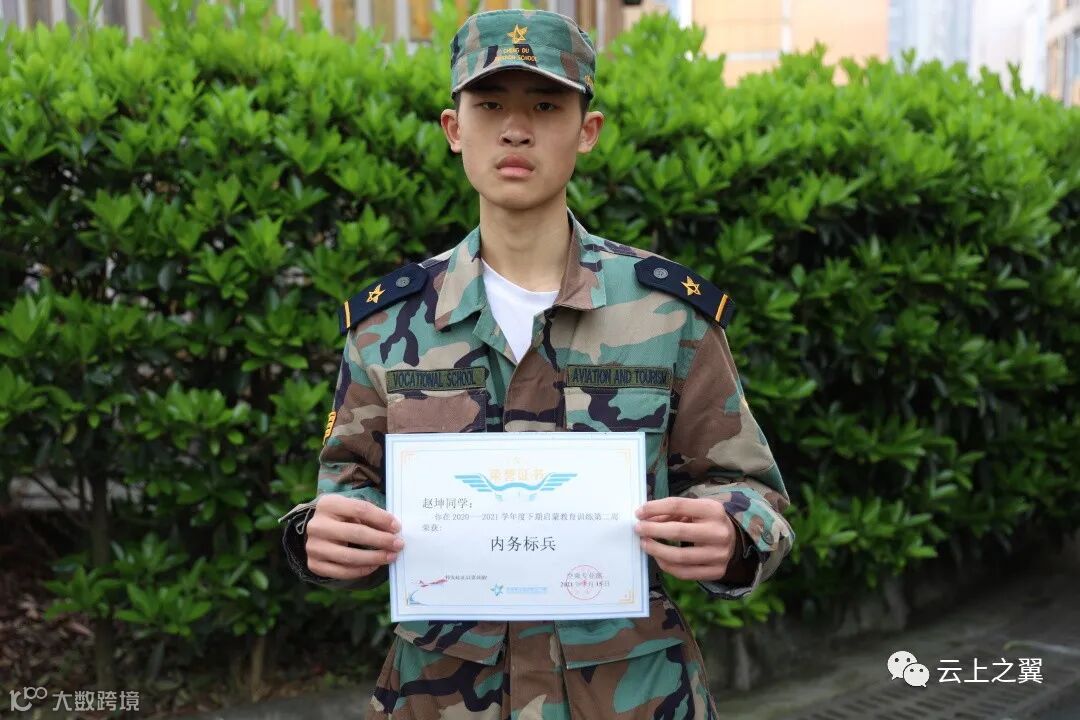 我是空乘空保一中队徐文定,来自广东-深圳,这周我拿到了训练标兵的称号,这是老师和教官对我这周军训成果的肯定,在今后的日子里我也会更加严格要求自己!