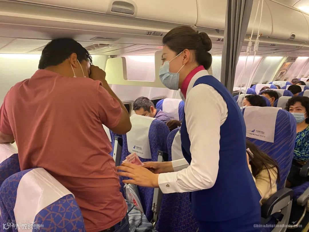23时49分,飞机滑回停机位,乘务组协调旅客预留出宽敞空间,准备好冰块等物品
