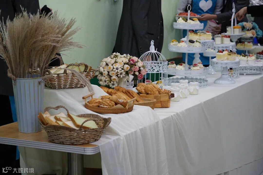 在毫不知情的女老师们走进食堂的瞬间,伴随着“女神,欢迎光临!”,属于她们的节日正式拉开帷幕,映入眼帘的是“厨娘们”准备的各式点心,自助区小巧的草莓慕斯造型可人,松软的巧克力蛋糕铺垫醇厚,长条的法式面包铺着一层金黄酥脆的外皮,还有花花绿绿的沙拉diy区无不证明着“厨娘们”的用心程度。