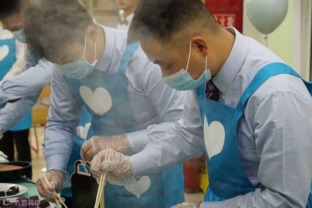 当然,点餐区的中式菜品也不甘示弱,有香气扑鼻的包点、晶莹透亮的馄炖、各式面点层出不穷。当女老师们正在享受丰盛的早餐时,厨房中的“厨娘”惊喜现身,当他们摘下厨帽,女老师们才发现这些“厨娘”竟是自己的男同事们。