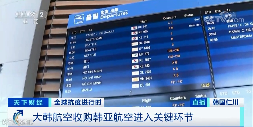 在韩国仁川国际机场二号航站楼,从机场大屏可以看到,后续计划起飞的航班并不多,其中大韩航空占到了一半左右。尽管国际航线还没有恢复,但大韩航空已经到了决定能否跻身全球航空业前十位的重要关口,那就是接受韩国国内以及航班往来国家和地区的审查,核心议题则是大韩航空收购韩亚航空后是否会寡头垄断。