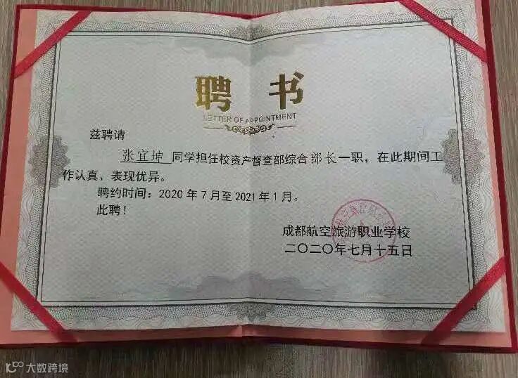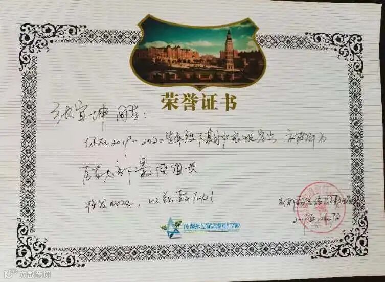 2017-2018下学期荣获纪检部”优秀干事”2017- 2018下学期荣获综合专业部"优秀学员"