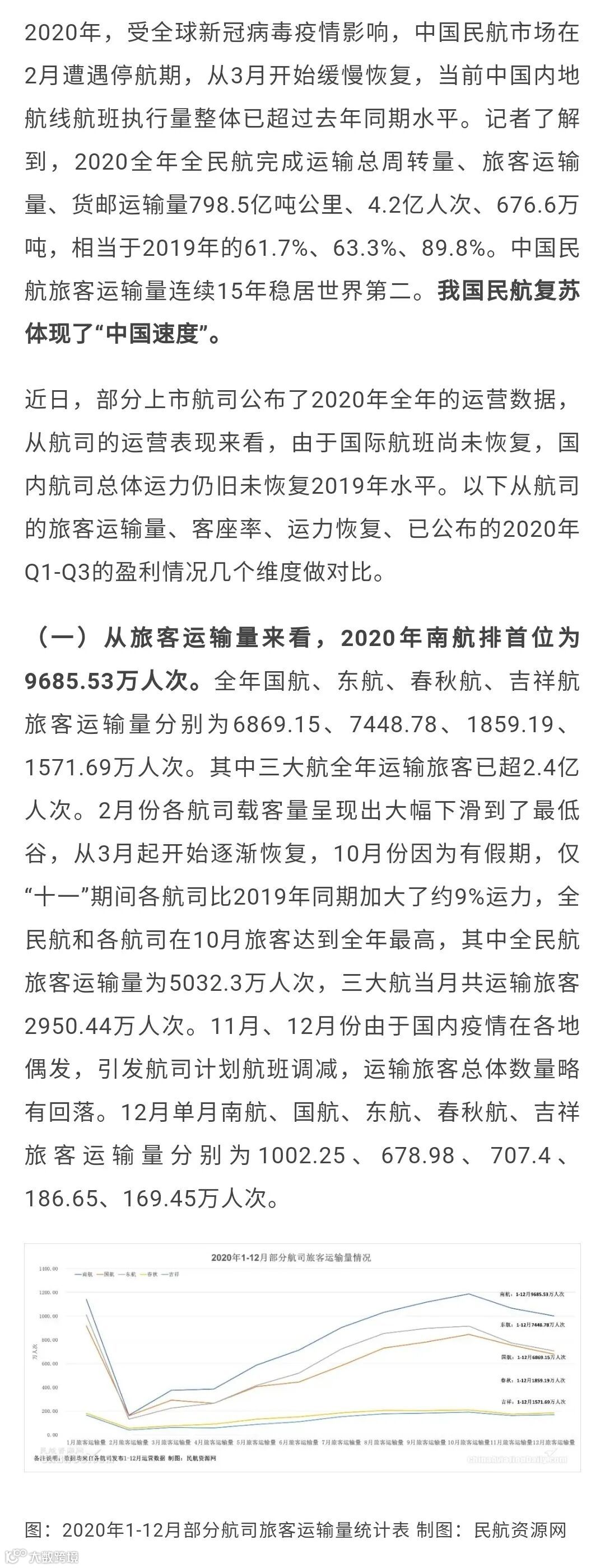 导读:2020年部分航司成绩单来啦