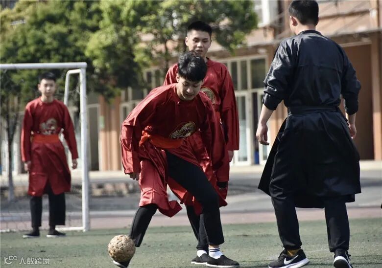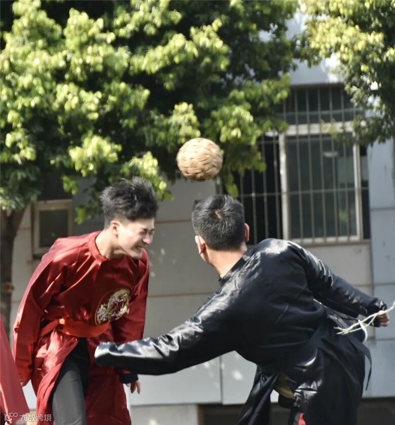 活动当天,同学们穿着自己的汉服,在校园里开展了各类活动。由师生组成的蹴鞠比赛尤其吸睛,伴随着击鼓声,双方队员双双进场并互行拱手礼。比赛正式开始,蹴鞠球在同学和老师们的脚下飞速穿梭,传球、抢断、配合、射门……好不激烈,同学们也真切地体会了古代民间传统活动的魅力。