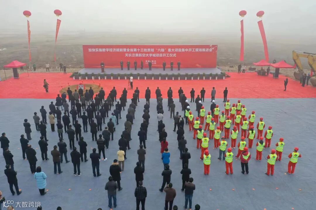 12月12日,泛美天长航空大学城开工仪式隆重举行。据悉,其占地1128亩,总投资33亿元,分两期完成投资建设,预计首批招生将不低于2000人,开始招生后的5年内学生人数将达到2万人。