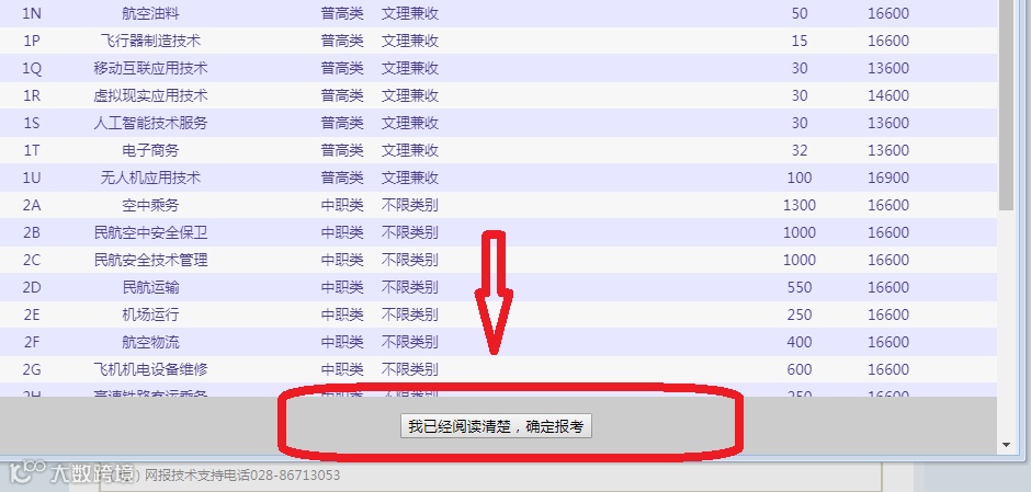 点击“选择”后会出现四川西南航空职业学院单独招生专业及专业代码,往下滑,点击最下方“确定报考”。