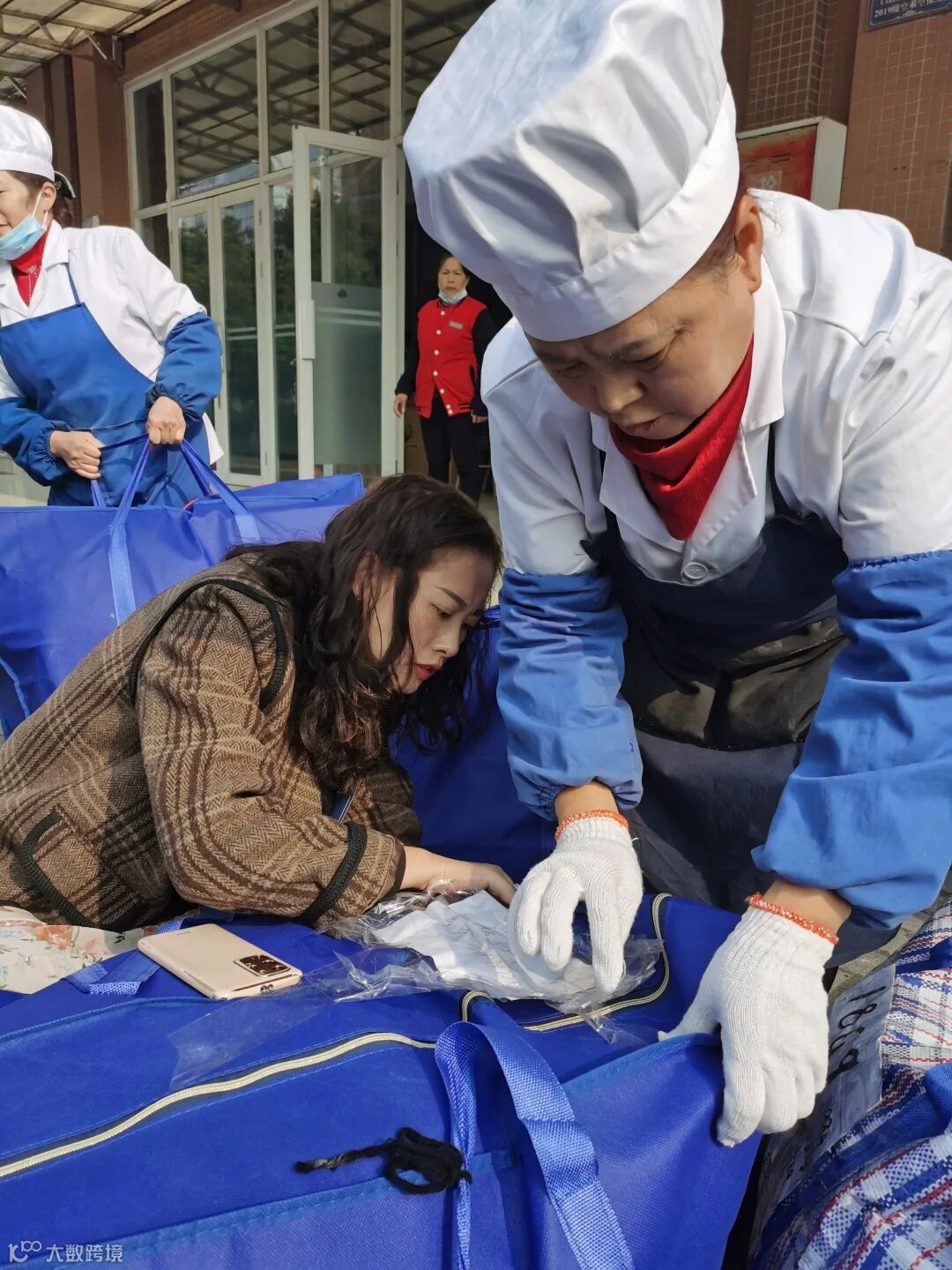 叔叔阿姨们总是小心翼翼的呵护着每一个同学的行李,希望他们在领到行李的时候都是完完整整的,当行李外包装出现破损的时候,学校的领导和食堂的叔叔阿姨们,会做出即时的补救。