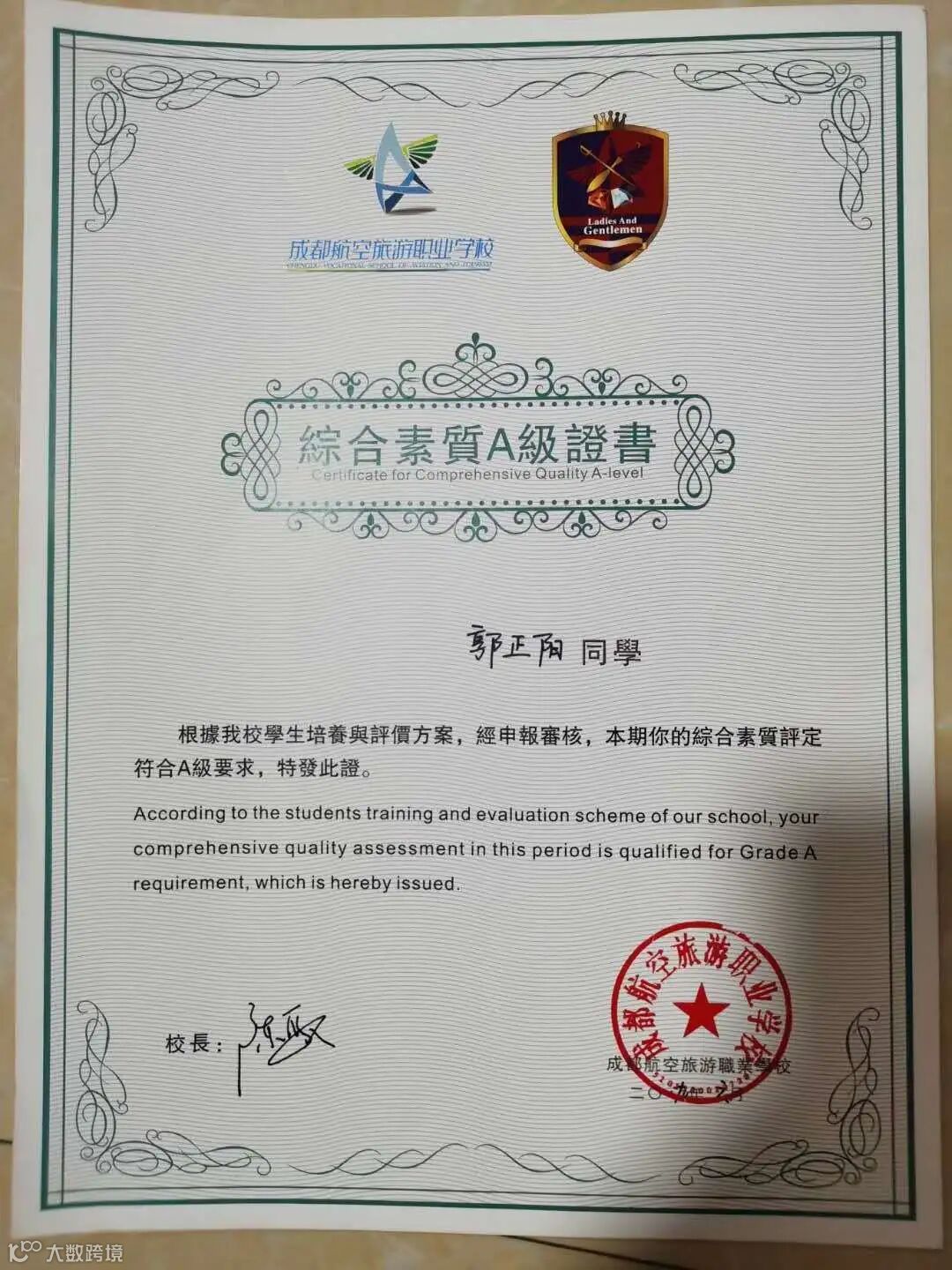 2020年终于获得了综合素质A级证书