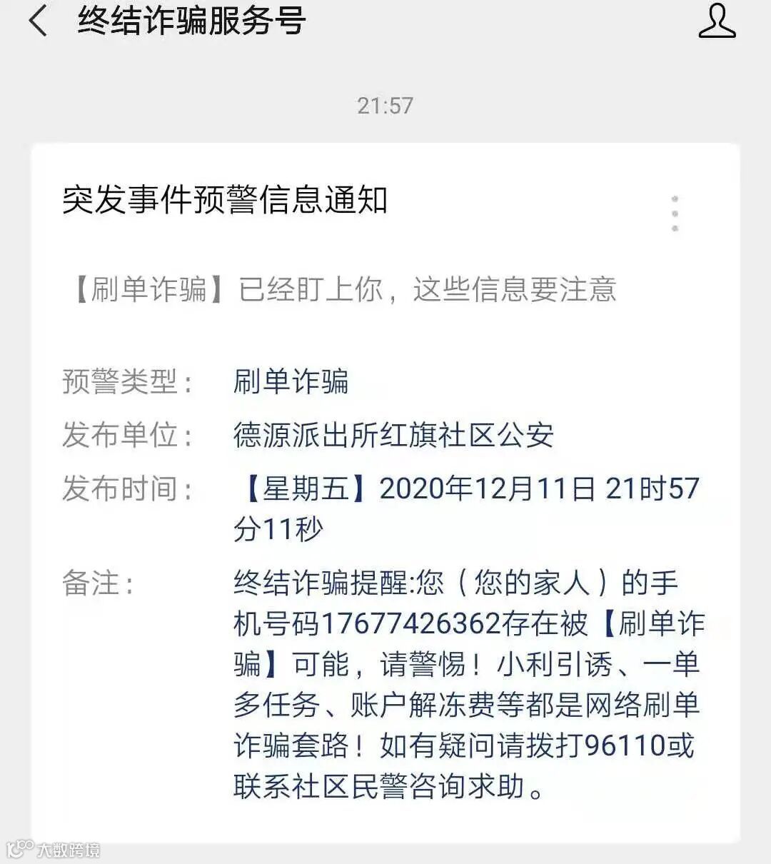 由于这名同学提前安装了“金钟罩”,此时“终结诈骗服务号”立即为该同学发送紧急预警信息,并提供一系列处理手段。