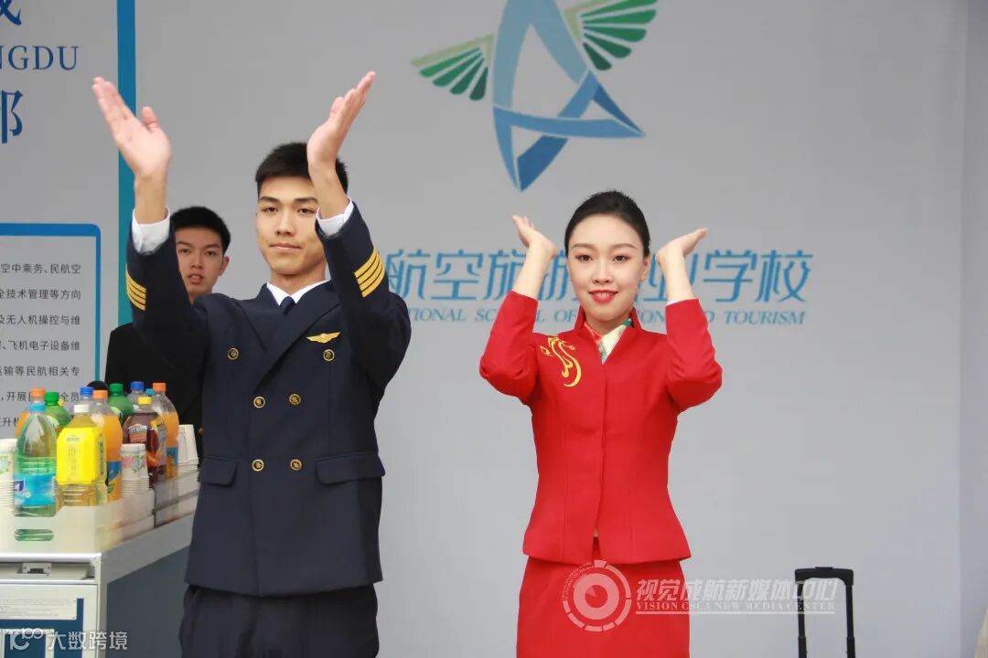 仪式现场,以四川西南航空职业学院的一场普及航空知识的空乘活力表演秀《乐享云端》拉开活动帷幕, 将空中服务的专业技能与歌舞相结合,让人耳目一新。