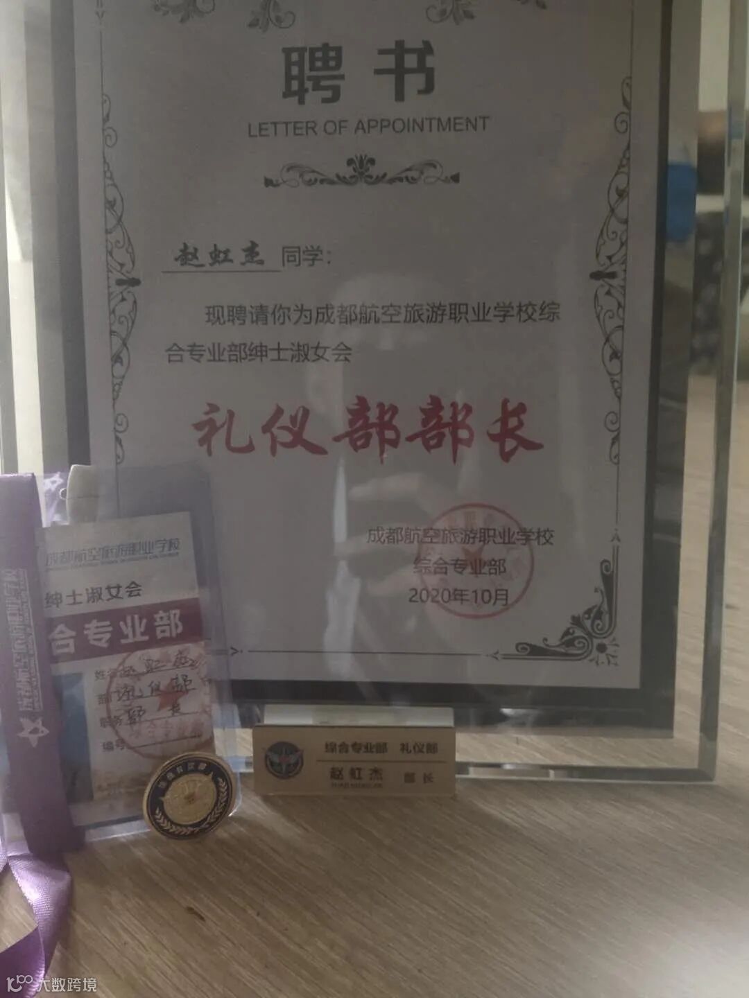 获得礼仪部部长荣誉聘书