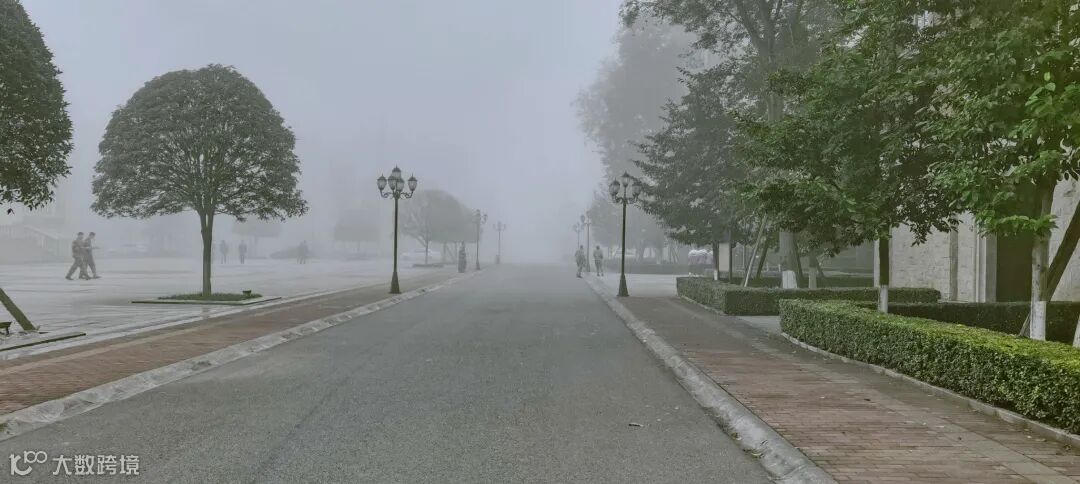 雾的轻柔与教学楼的气派