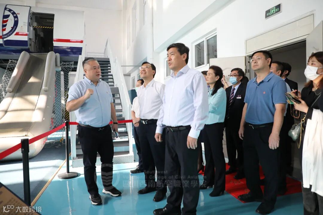 9月29日下午4时,罗强副省长到西南航院调研指导产教融合服务、航空专业实训建设、教育扶贫、创新创业服务等工作。省政府副秘书长刘全胜,教育厅副厅长张澜涛,市政府副秘书长廖成珍,金堂县县委副书记、县长古建桥,县委副书记、淮州新城管委会主任刁义,副县长左光磊等陪同调研。泛美教育集团董事长魏全斌,西南航院院长衡代清等参加了调研。