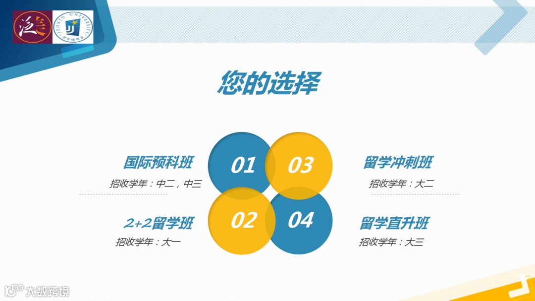 第一阶段:进入国际学院,进行语言的强化学习和提升,同时修满本科阶段部分专业课程学分。