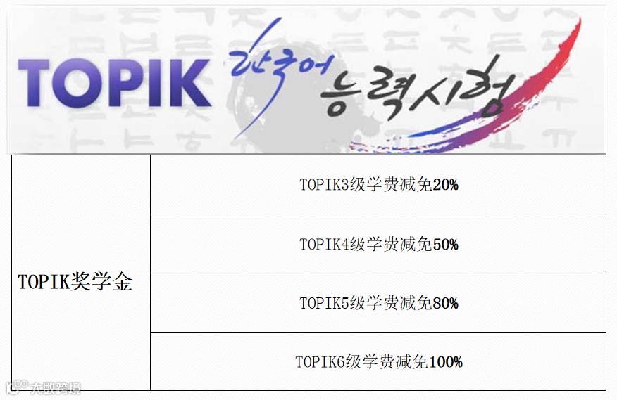 通过韩语TOPIK3即可享受学费减免20%的奖励政策,韩语TOPIK级别越高,奖励力度越大,为每一位留学学子的梦想提供充分保障。
