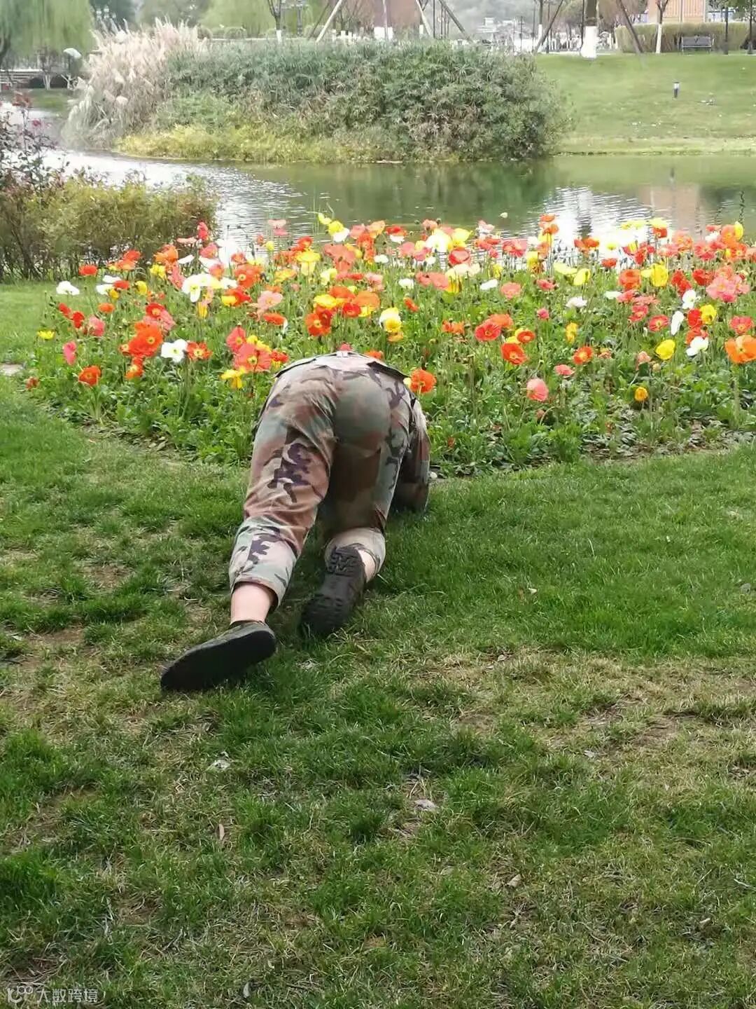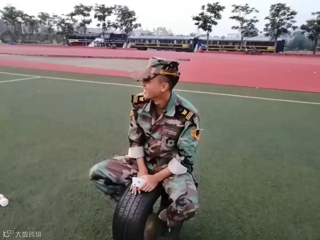这是军训时偷拍的我们的教官,笑得像个二傻子,跟训练的时候感觉很不一样。