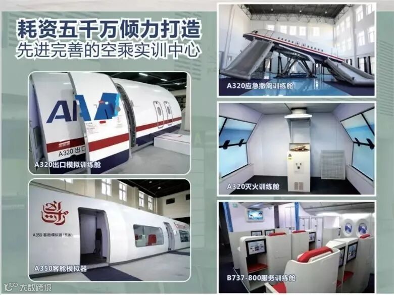 学校教学设施设备齐全,将斥资两干万购买波音737实体飞机,建立空中乘务实训中心、飞行模拟训练中心、空保训练中心、飞机发动机拆装训练中心等多个航空专业实训中心,包含波音737模拟客舱、A320六自由度全动陆地应急撤离训练舱、R44五级训练器、PA-28五级训练器、PA-44五级训练器。