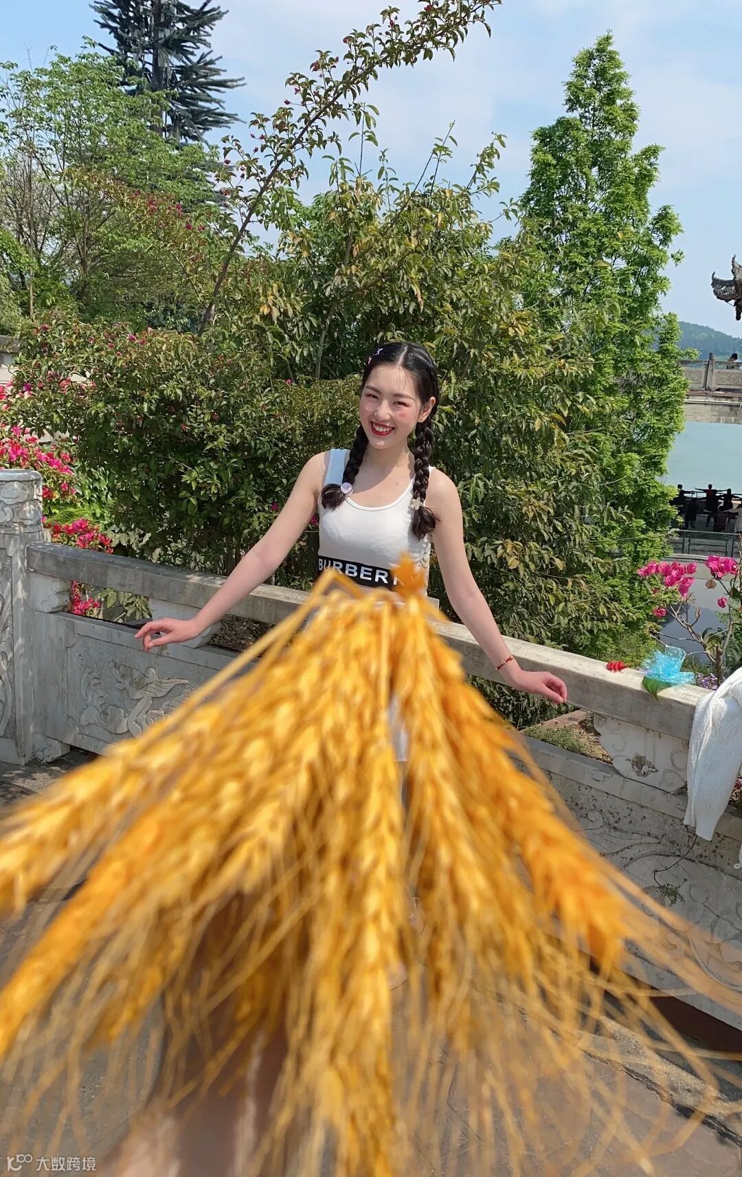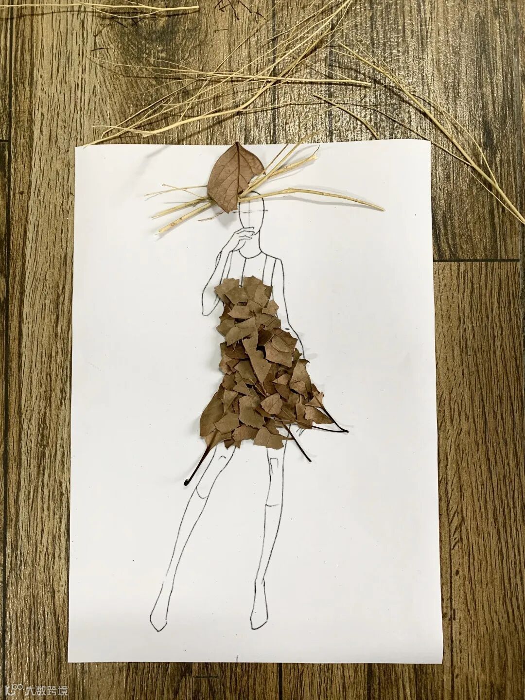 闲逛看到路边的野草穗,在风中摇曳展露独特的美,就想着做成流苏裙。但制作过程中发现模特的的造型很适合鱼尾裙,于是我用草叶勾出轮廓,草穗填充裙身,穗的线条便成了裙的纹路