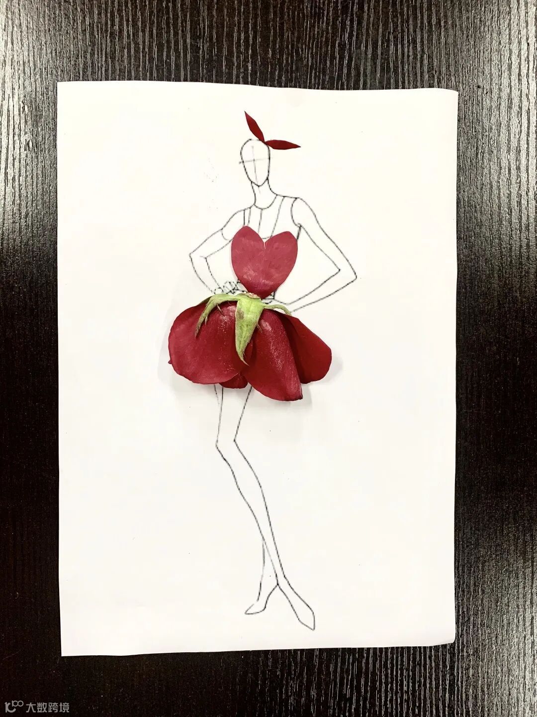 三角梅和玫瑰花是女朋友最喜欢的花,记得她曾经说过希望有一天自己能穿上以这两种花瓣为原材料设计的裙子出现在我面前,所以这次为她设计了这个。