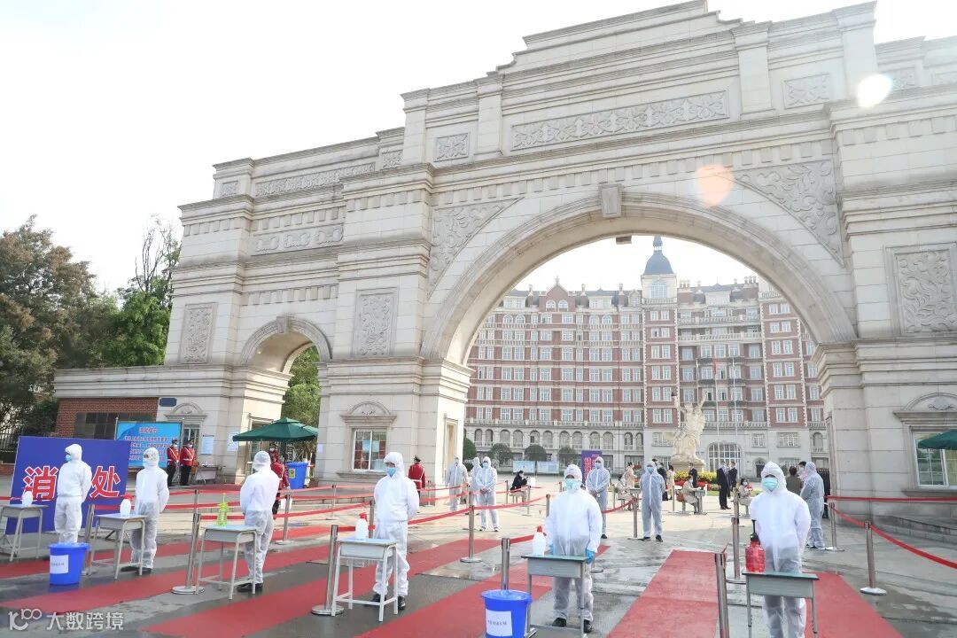 学校大门设置多个消毒通道、体温监测处,资料审核处等,学校人员会依次对学生进行消毒,体温测量,体温正常者到教师处出示身份信息及健康码,资料合格方可进校。