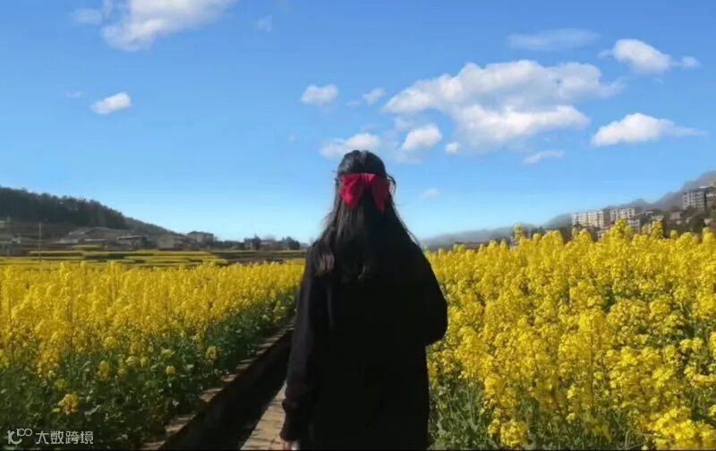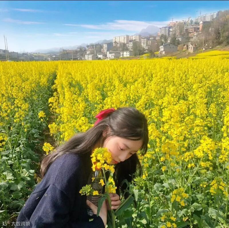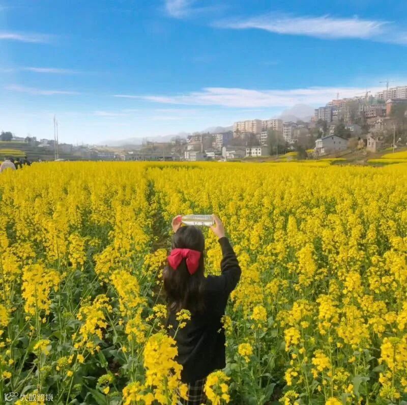 金黄色的油菜花镶嵌在绿色的麦田里,就像彩线编织的锦缎,就像是黄墨经过雨水浸染一样,光彩夺目。油菜有的才展开两三片花瓣,有的全展开了,露出了黄色的花籽,有的还是花骨朵,看起来鼓鼓囊囊的,像是要破裂似。