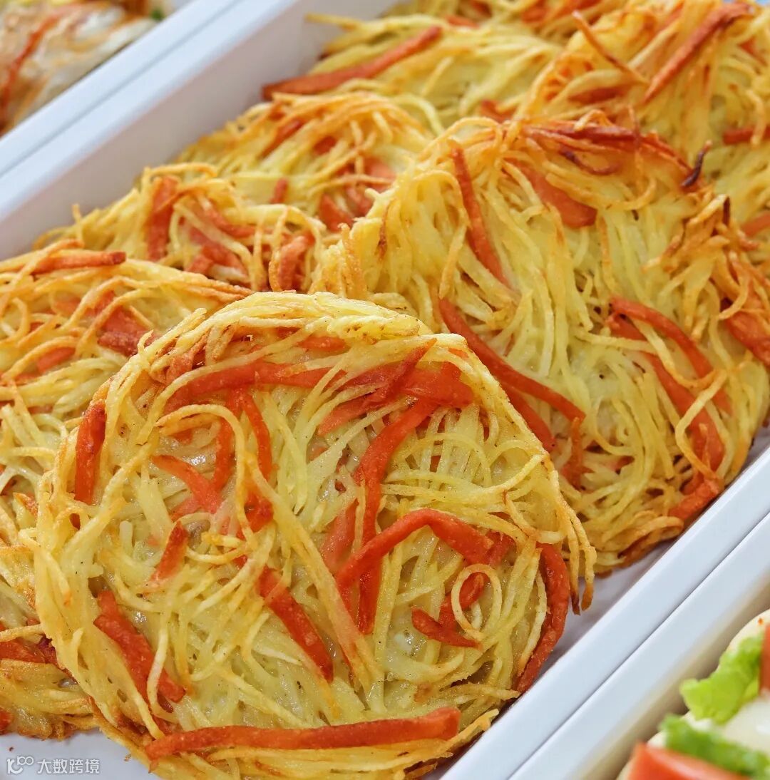 土豆饼:将土豆切成细丝,再和着辣椒炸成圆饼,口感酥脆,可以当主食,也可以饭后当加餐。