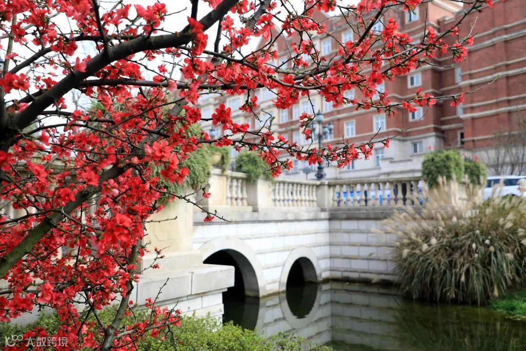 绿水倒映着红花仿若一幅名画