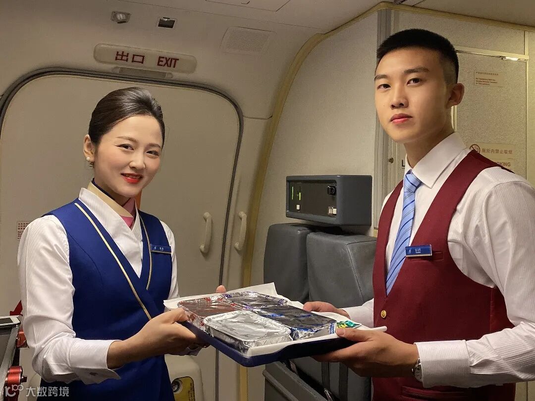 于雨靖(右)与航班乘务长