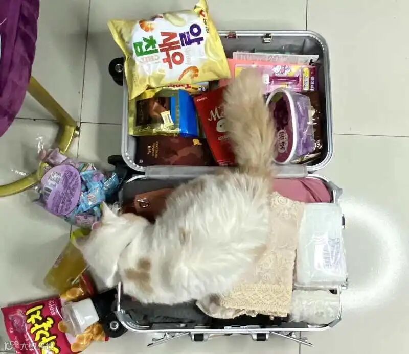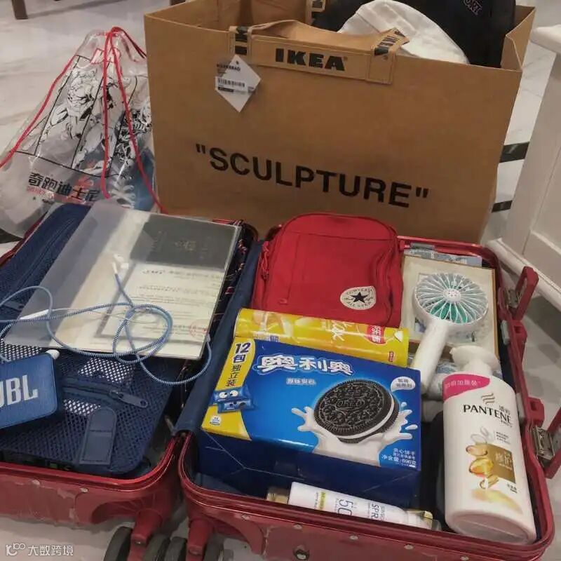 左手行李箱右手零食袋